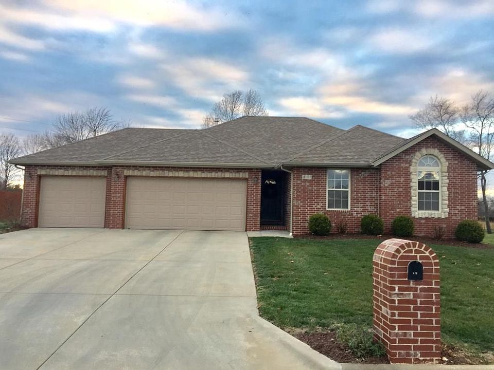 Beautiful all brick home in Dogwood Estates with 3 bd, 2 bath, 3 car garage with an open floor plan. Granite countertops in kitchen, tile, stainless steel appliances, and flat top stove. Split bedroom floor plan with large master closet, and double sinks in master bath. Nice level yard that backs up to a field.
