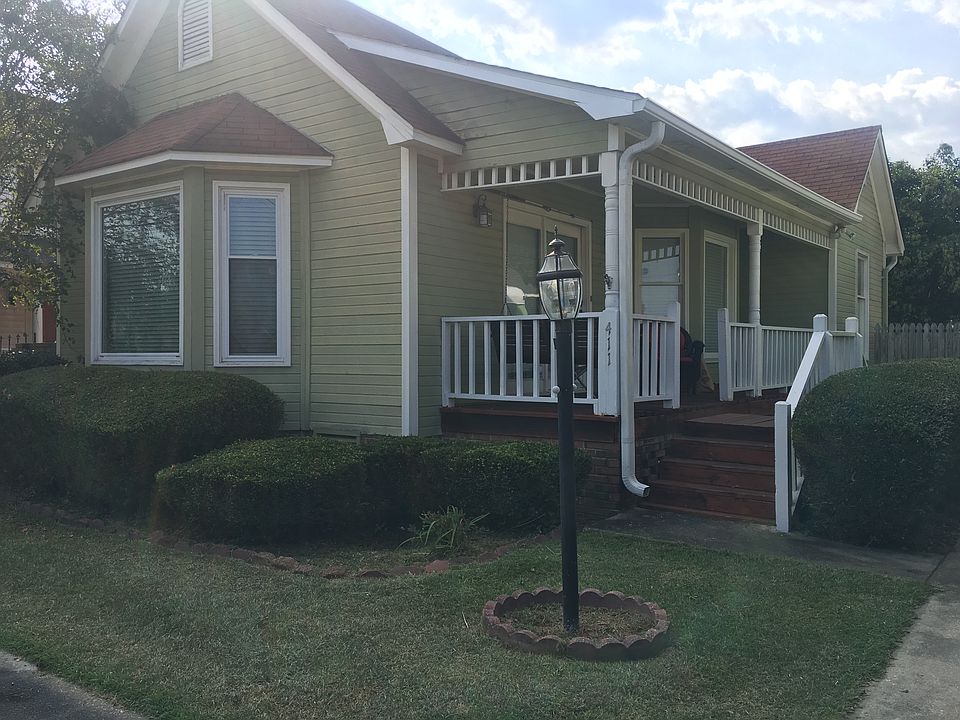 Home has 2 bedrooms & 1 bathroom. Laundry room with a washer and dryer that is included. All appliances are included. There are two side porches and fenced in courtyard with storage building.