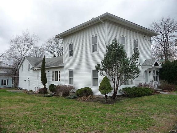 This home is so unique you are going to want to take a look at it. Seller just had new laminate flooring put down in entry way, kitchen and dining room. Carpet in the Den/Office. Beautiful peg hardwood flooring in the grand living room and more. Stunning stair case and plank wood floors upstairs in main house. There is an eat in kitchen, with corner breakfast nook, plus formal dining room. Above garage possibilities are endless. Guest quarters, Home office and more. This home sits on a parcel that is 99 x 132 and the lot next to it also goes with this grand home as well and is 122 x 132 and does have municipal water to it as well. The House That Was More Than a Home: From a great grandson's eyes; By the time my great grandparents moved here, nearly 100 years ago the house on the corner of Main and Lincoln in the cozy hamlet of Mannsville, had already been transformed a number of times. According to research my grandfather had done, it started as a modest one room cottage that was the post office for a time before 1850..see attachments for the rest of the story...