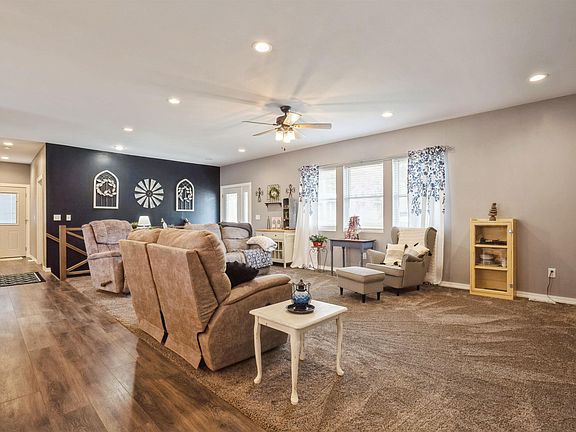 All the conveniences of town and the beauty of the countryside found in this In Town Acerage. This new build (2022) offers an Open floor plan boasting a large custom island with all the counter space to cook, bake, and have the family seated around. The kitchen complete with high end stainless appliances and soft close cabinets, you will even find a large pantry tucked away in a surprise spot. Primary En Suite on one side of main level and 2nd bedroom and laundry on the other for convenience and privacy. As you venture down and extra wide stairway you find a massive room perfect for family room , man cave or whatever fits your style, with the basement 3/4 of the way finished - there is just enough left to ad your own special touches. This massive room is flanked on either end with 2 large bedrooms. This walk out basement opens up to the large tree filled back yard and beautiful view of the countryside. there has been a lot of love put into this home , ready for the next owner to enjoy.