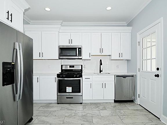 Fully renovated townhome without HOA fees! Brand new large Eat-in Kitchen with custom cabinets, quartz countertops, tiled backsplash and all appliances! 2nd floor with new bathroom and two bedrooms. New hardwood floors and tiles throughout! New water heater and central heating/cooling system. New roof, siding, windows and all doors. Private backyard with vinyl fence and new driveway. FHA financing available. Low taxes!