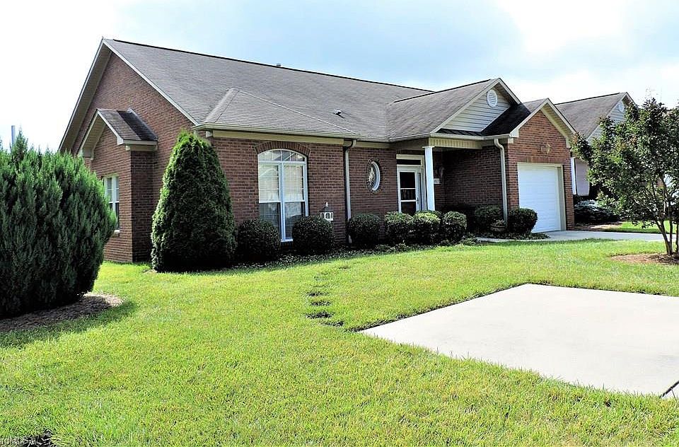 Hard to find beautiful ONE LEVEL BRICK Townhouse with lovely transitional interior and garage!! New carpet just put in!Large great room looks out over PRIVATE YARD & nice entertainment patio. Master has new addition 14k spa/tub with shower & tile surround. Front 2 bedrooms perfect for family, guest or office space. Nice built-in shelves & architectural features in home.Home has additional parking in front and at end--a BONUS! Move-in ready & priced to sell!