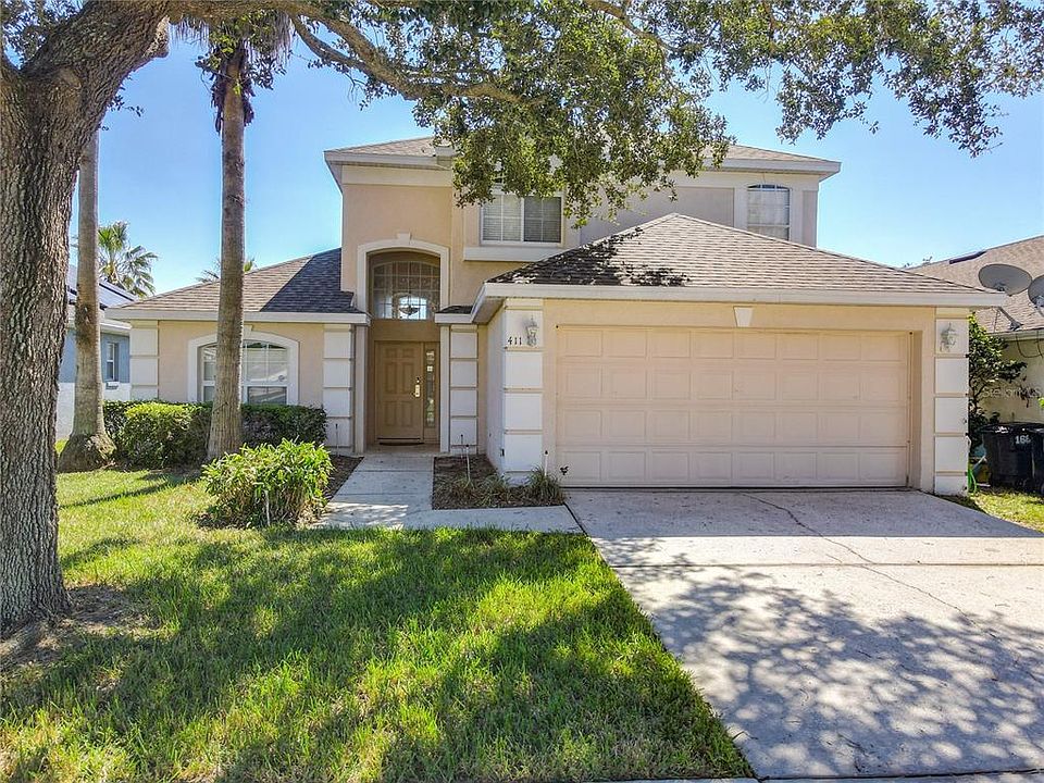 Welcome to the exquisite Belmont Model in Highlands Reserve's golf community. Featuring a brand-new roof (installed in Jan 2023) and impeccable design, this two-story, 4-bedroom, 2.5-bathroom home is a true gem. Step into a sunlit haven with south-facing screened pool (new screens in 2023) and a covered patio, offering a perfect outdoor retreat. The living area boasts two-story vaulted ceilings, an abundance of windows, and a decorative fireplace, creating a spacious and inviting atmosphere. Located mere minutes from all Disney Parks, shopping, dining, and major highways, this home combines convenience with luxury. Plus, it's zoned for short and long-term rentals, making it an excellent investment opportunity. Whether you're looking for a permanent residence or a rental property, this beautiful home provides a harmonious blend of style, comfort, and easy access to all the magic Orlando has to offer.