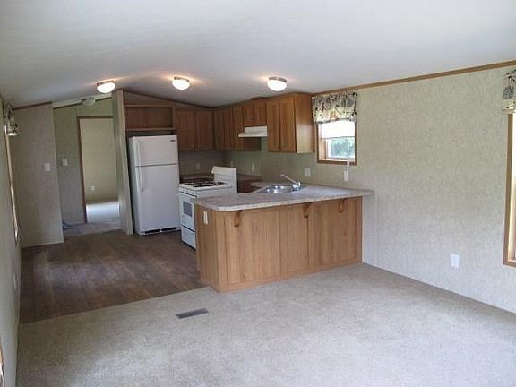 Brand new mobile home! 2 bedrooms, with full bath in master bedroom as well as walk-in closet, full hallway bathroom, kitchen equipped with refrigerator and gas stove, off street parking, large deck and spacious flat yard. Owner pays water and sewer.