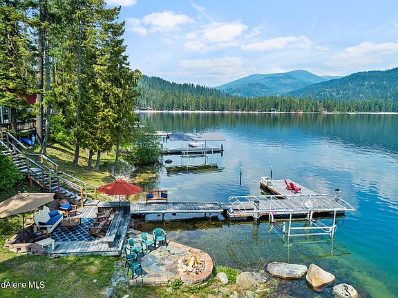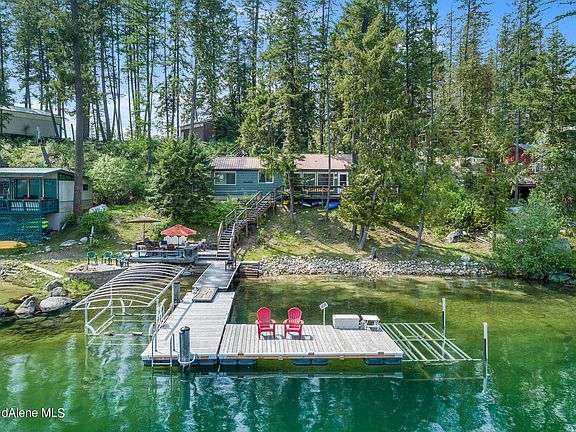 This lake cabin has it all! Priest Lake Pinto Point Charmer with 105' of waterfront playground! 2 decks to relax on with family & friends. Room for a crowd - 3 Bedrooms and 2 bathrooms with Master Suite, plus large bunk house (sleeps 7). Most furniture included! Heated by wood stove and electric baseboards. Main floor laundry room. Double-car garage (600 sqft) with room for your toys, double boat lift (standard and pontoon). Community sewer. Try before you buy! $389,000 is the price for the cabin ONLY. It is on land leased from the state of Idaho. Current 2023 lease payment is 17,000, and lot appraisal value is 425,000. There is one more year on lease. 2024 lease payment will be $40,0000 based on the 2024 appraisal value of $1,000,000. Owner can put lot in the annual state lease lot auction in August of '24 for the opportunity to purchase. Or 5, 10, and 15 year lease options are available in 2025. For more information, call the lease office office at 208-334-0200. Cash offers only.