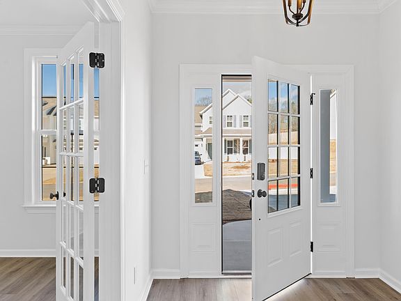 In the Palmer - A plan, as you enter, there is an office with french doors to your right. A sunroom offers a bright and warm space for a cozy dining space or sitting area. The kitchen and family room are open and spacious, plenty of space for entertaining or hanging out with the family. You'll love the center island and a cozy fireplace. The kitchen is bright with white cabinets, quartz counter tops, backsplash, and gas cooktop. You will also get an organizational closet space off of your kitchen where you can store those Bulk grocery items and not have to take up space in your pantry. This two-story home comes with 3 bedrooms and 2.5 bathrooms. Upstairs, the primary bedroom connects to a generous bathroom with double sinks, a HUGE walk-in double closet and a tiled shower. Additionally, there are 2 other bedrooms with walk-in closets and another full bathroom. You also get a loft area where you can get away from it all after a long day or utilize it as a second living space where your kids can entertain their friends. You'll love living in Yorkshire Farms with desirable schools, minutes to the local library, easy access to I-85,and a quick fifteen minute drive from downtown Greenville!