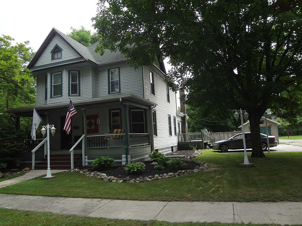 Move in ready! This home has many updates in recent years. Features natural woodwork, granite kitchen countertop, finished attic room , updated vinyl windows, partially finished basement. Large front porch. Wrap around deck, privacy fenced back yard, and two patios. Range, Refrigerator, washer, dryer, microwave included. Custom window blinds included. Some information provided from Public Records and may not be accurate.