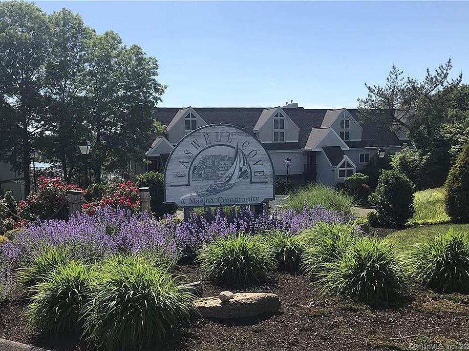 WATERFRONT, END UNIT! Enter this light and bright condo in the sought after Caswell Cove complex and be wowed by the water views. The spacious eat-in- kitchen has been redone with quartz countertops and newer appliances, the refrigerator is brand new. One level living with 2 bedrooms and 2 updated full bathroom, one featuring a jacuzzi tub, and 2 generously sized bedrooms. There is an area off the kitchen that can be used as a den/office. The expansive living room/dining room are awash with natural light and beautiful water views. This is a quiet end unit and your living room sliders take you out to the very private, large deck where you can relax and feel like you are on vacation all year long. Built-in cabinetry, a laundry room and outside closet offer plenty of storage. The complex offers many amenities for your enjoyment: a pool, clubhouse, gym, tennis court, basketball court, picnic area, and a marina. Conveniently located close to shopping, major highways and the Milford beaches. DON'T MISS IT!!! Assigned parking spaces are #'s 443 and 457. Please open the curtains in the front of the condo to show the amount of light that comes in.