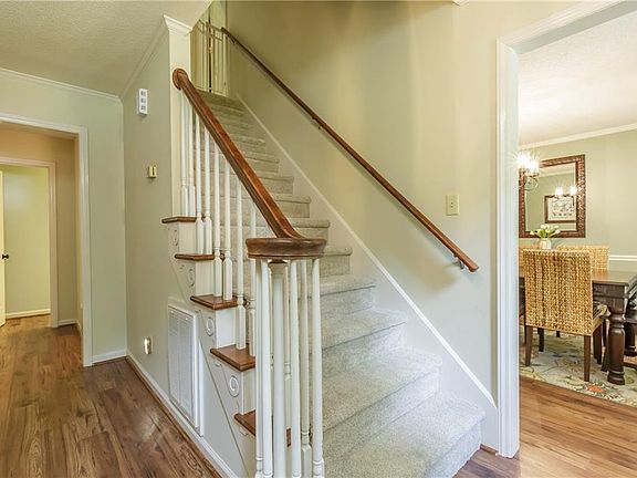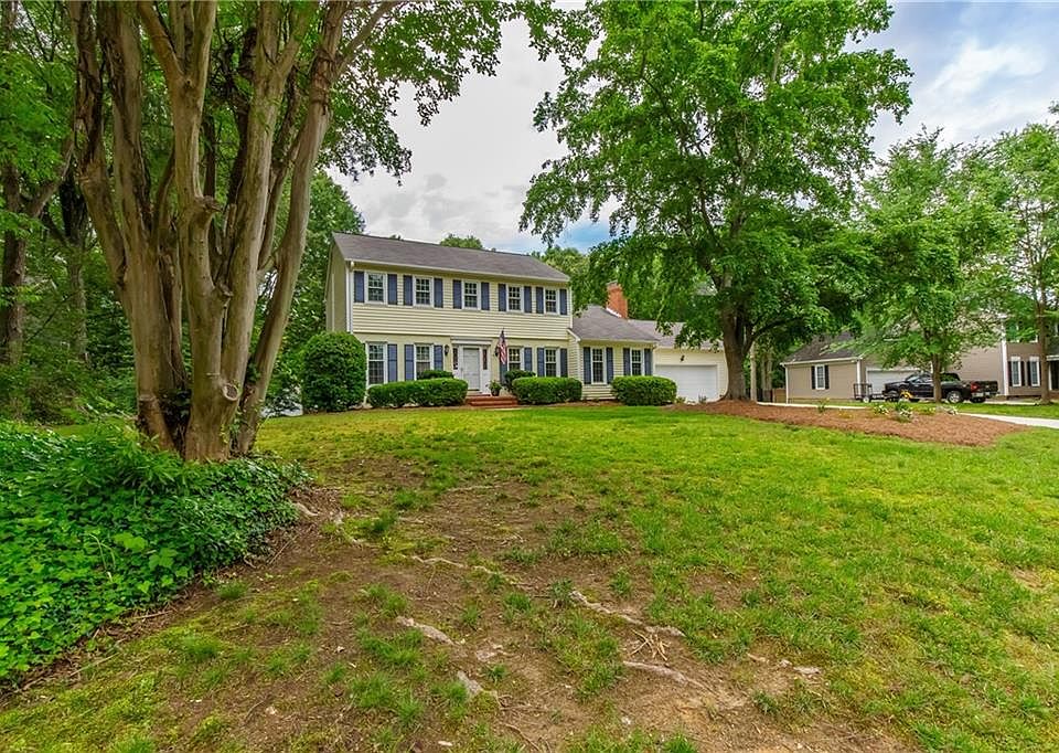 FANTASTIC 4BR, 3 bath home in established neighborhood. Excellently maintained home & yard w 2215sq' on .37 acres. Wide paved drive & oversized garage. Front porch greets you to this beautiful home. Foyer opens to lovely dining on front w crown molding, chair rail & windows. Generous kitchen boasts gorgeous granite, crisp white cabinets & SS appliances. Family room boasts painted brick-surround gas-log FP. Flex room could function as office, den, library, or playroom. BR & full bath on level 1 plus laundry room. Level 2 w MBR providing ceiling fan, carpet & in-suite bath. Mbath offers dbl vanity & separate shower w water closet. BRs 3/4 offer carpet, fan & dbl door closets. Full bath w shower/tub combination 2nd. Gorgeous yard w lush lawn, mature trees & landscaping. Raised deck & brick paver patio for entertaining/family gatherings. Flat lawn perfect for outdoor activities w border of trees giving privacy & wonderful breeze. MOVE-IN-READY home! Close to interstate/shopping.