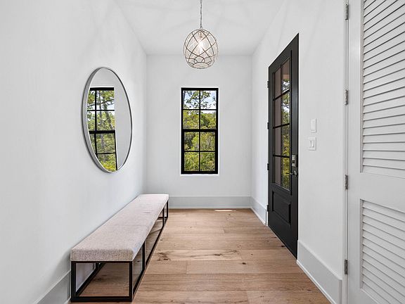 Step into a beautifully crafted new construction home, designed by Gregory Jazayeri and built by Focus Construction, nestled in the exclusive Treetops neighborhood of Inlet Beach. This 2,553 square foot residence seamlessly blends luxury and function across three thoughtfully designed levels, all set within a gated community with direct beach access and a community pool.As you enter, you'll be welcomed by the warmth of European hardwood floors and the sophistication of cypress accent ceilings, which complement the expansive 10-foot ceilings on the first floor. The second floor soars to 12 feet, creating an airy, open space perfect for entertaining or unwinding.The heart of the home is the gourmet kitchen, featuring Thermador appliances, custom cabinets, and a large island with a stunning waterfall edge. The kitchen's sleek design is further enhanced by a tiled backsplash that extends to the ceiling and black accent hardware, giving it a timeless appeal. Just off the kitchen, an outdoor BBQ summer kitchen awaits on the second-floor terrace, ideal for al fresco dining amidst the tranquil surroundings.