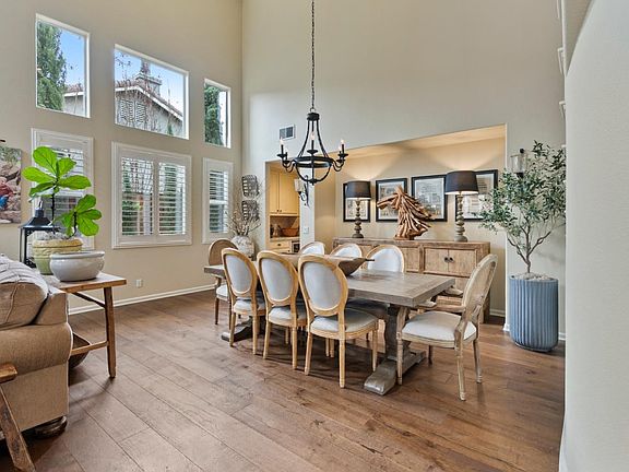 Welcome to a world where timeless elegance meets modern luxury! This stunning Spanish-style retreat boasts five bedrooms and 3.5 baths, offering a lifestyle as captivating as its architecture. Entertain in the living/dining area with grand style, offering French Oak floors throughout, highlighted by a custom wine wall and a convenient butler's station. The gourmet kitchen, a chef's dream, features dual islands, a California Closet pantry, coffee bar, professional cooktop, double ovens, and more! A downstairs Jr. Suite with a full bath provides flexible options for multi-generational living. The upstairs primary retreat is a sanctuary of relaxation, complete with a spa-inspired bath, oversized shower, custom his-and-her closets designed by California Closets, and a separate en suite office or future nursery. Step outside to your private oasis, an entertainer's paradise featuring an outdoor fireplace, BBQ area, and the timeless beauty of majestic olive trees. This is more than a house; it invites a life of unparalleled style and sophistication. Welcome home.