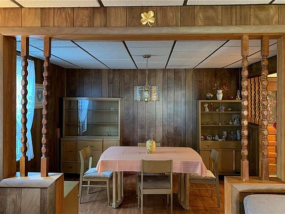 Unique arch architecture greets you as you enter into the warm, comfortable, well-maintained home. Beautiful flooring in the living and dining rooms. The fireplace features tongue and groove woodwork above the mantel. The kitchen has an extended area for additional kitchen/office space. A nice-sized mudroom/office with private entrance is located off of the kitchen. 2 main level bedrooms. The master bedroom has 2 large closets. Beautiful walnut interior doors throughout the main floor. The 3 floor attic is multi-purpose - bedroom, playroom, etc. Both bathrooms have step-in showers. The lower level is the never-ending basement! In addition to a game room area / living-storage area / laundry area, there are 4 other rooms! One car detached garage and a large, flat back yard. Walking distance to Canonsburg Park.