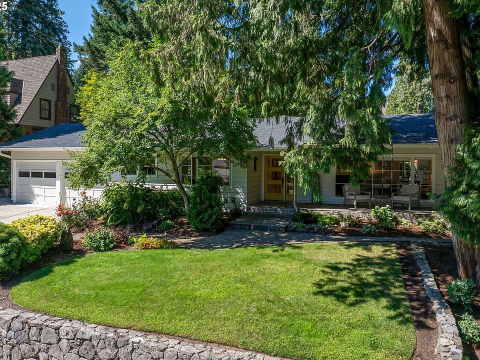 Sophisticated one- level living. Fashionably Modernized Mid-Century, Remodeled to Perfection in the Lakewood neighborhood near Downtown Lake Oswego! This remarkable TRUE main-level living home sits on a large, private corner lot just steps from lake easement access, charming shops, restaurants, the river, and local parks including George Rogers Park. Nestled on a quiet, highly coveted street of multi-million dollar homes, this home showcases the highest quality craftsmanship, clean lines, exquisite materials, and warm, inviting design throughout.The main floor was meticulously repainted, beautifully refinished hardwood floors, updated cabinetry, and a stunning new powder room featuring Ann Sacks tile, a custom vanity, new faucet, and designer lighting. Enjoy the newly installed tile flooring in the sunroom, and new hardwoods in the TV/media room. The home also features fresh Hunter Douglas window coverings and elegant Rejuvenation light fixtures throughout—including the dining room and all bathrooms.New Bosch refrigerator and dishwasher (April 2025), new front door with side panel, and updated main floor laundry room. Exterior painted in 2023 and refreshed landscaping by Aurora Landscaping (May 2025) adds to the incredible curb appeal.Two patios, walking paths, mature custom-designed gardens, and a welcoming flagstone front porch create outdoor living at its finest. The lower level offers exciting possibilities for future expansion or additional living space. A rare and timeless opportunity in one of Lake Oswego’s most desirable neighborhoods. Rights to three easements include North Lake Club, South View Club and Lakewood Yacht Club. Recently Seismically Upgraded.