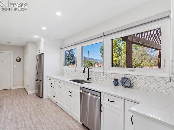 Beautifully updated home in School District 12. The welcoming front patio draws you into the living room featuring neutral colors and luxury vinyl flooring. The newly renovated kitchen offers abundant cabinet and counter space, quartz counters, herringbone tile backsplash and new appliances. Ideal for entertaining, the dining room is adjacent to the kitchen and overlooks the living room. Unwind in the spacious master suite with updated bathroom and three closets. There are two secondary bedrooms and a full bathroom. The sunroom is a perfect office, reading or music room. Enjoy evenings on the patio overlooking the private yard. Located near Cheyenne Canyon with easy access to D12 schools, dining, shopping, entertainment, Stratton Park/trails, & I-25. This stunning home shows pride of ownership and offers: newer furnace, A/C, water heater, renovated kitchen, updated bathrooms. You can move right in and enjoy this inviting home!
