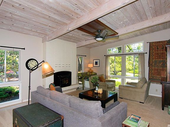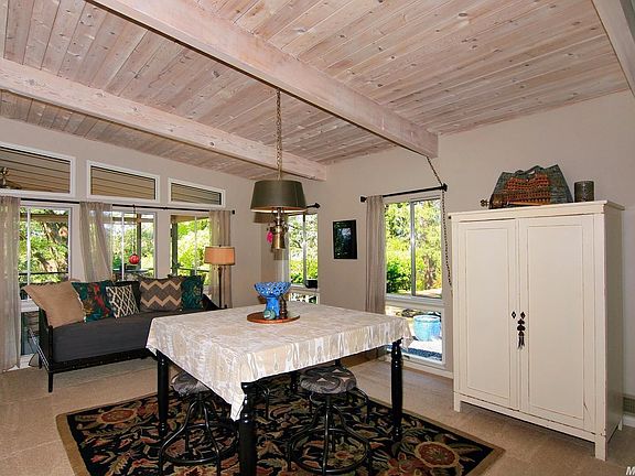 At the top of a hill, at the end of the rd...this light filled custom build is one fantastic place to call HOME. Privacy & lots of possibilities of how to use the abundant space both inside & out. Circular driveway & room for toys on top of a beautiful & unique home. Built as a 2 bdrm but w/space to wall in the upstairs loft space to easily convert to a 3rd bdrm. Septic is built for a 3 bdrm. 400 sf+/- covered deck off of the living spaces connects to the side yard which is fenced in. Newly added solar and interior HVAC units make this home energy efficient.