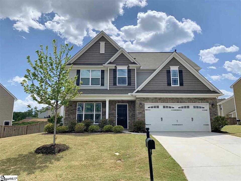 Only 5 years old but like new again! The entire home was painted, and all carpeting was replaced after the owners moved out. At approximately 2100 square feet, this 4 bedroom, 2 ½ bath home in Simpsonville is move-in ready! Granite countertops and staggered-height cabinets highlight the kitchen where all appliances, including the fridge, convey. Not a fan of gas stoves? The kitchen is wired for an electric range if you want to change it out later. There is an office with French doors on the first floor, along with the spacious living room, formal dining room, and breakfast room. Even with the energy-efficient low-e windows, lots of natural light flows throughout the open floorplan! Upstairs are the 3 generously sized guest bedrooms and an expansive master suite, with large walk-in closet, separate water closet, soaker tub, and comfort height vanity. Perhaps one of the best features of the home lies out back: one of the best lots in the neighborhood! It is level, fully fenced, very large, and especially private due to its positioning among other homes. There is an enormous stamped-concrete patio just waiting for social distancing to end! The sellers had an irrigation system installed, and the exterior spigots on the home have a high-pressure feature which allows you to use them like a pressure washer. All this in a family-friendly pool community which lies in a ZERO DOWN/ USDA ELIGIBLE area! Watermill is conveniently located just minutes from I385 and downtown Simpsonville, with Mauldin and downtown Greenville just a few more minutes away.