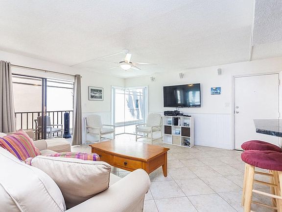 When it comes to location, you can't beat Beachcomber #301: The Third-floor condo is just yards from the beach, even closer to the oceanfront pool, a stroll from the famed Jacksonville Beach Pier and boardwalk, and only a quick car ride from the attractions and nightlife of Jacksonville itself. But as well as being perfectly situated, Beachcomber #301 is a delight in and of itself, with its airy sunlit rooms and serene, comfortable furnishings. With two bedrooms and bathrooms, the condo is spacious enough to house two couples or a family with kids. You are going to love the luxury of the king-sized bed in the primary bedroom, and the queen size alternative in the other bedroom is no less lavish. Each bedroom includes flat panel TVs, wireless internet and all the fixtures you need for modern living. The bay windows facing the ocean are just what you need to bring the crisp breeze blowing off the ocean to your living quarters. Both bedrooms have this form of access. Each room is designed to be spacious. Even with such large and opulent beds as well as roomy closets, there are still adequate empty spaces in the bedrooms for the kids to play and learn. It is all the invitation they need to take their out their action figures and train sets and let their imagination and fantasies take flight. You can also plug in the gaming console and race off to another world. This is a house where imagination and creativity are nurtured. While sweet dreams are all but ensured in Beachcomber #301's bedrooms, the condo's living room is just as restful. Sink back into the plush couch, put up your feet, and settle in for the big game or binge-watching your favorite show on the large flat-screen TV. Or, maybe you want to play a game with the kids--or take advantage of the free wifi while the kids sprawl on the floor with their action figures and crafts. Open the window and the door to the balcony and invite the crisp ocean breeze into the room! Adjacent to the living room is the kitchen with both a dining table and a breakfast bar. While dining out can be a highlight of a vacation (and there are plenty of fabulous restaurants nearby!), sometimes it's nice to enjoy a relaxing family meal at home. Our kitchen has just about everything you need, whether you're microwaving leftovers or showing off your culinary prowess: major and not-so-major appliances, pots and pans, and plenty of tableware to serve it all up--plus a dishwasher to help clean up afterward! All you have to supply is the food--and thanks to the full-size refrigerator/freezer, you can stock up once at the start of your stay and then forget about grocery shopping for the rest of your trip. Tucked away beside the kitchen is a full-size washer and dryer--yet another reason to pack light! You can run a load of laundry while you're exploring the boardwalk, surfing the waves, or lazing beside the pool. Given how frequently you'll be dashing from pool to beach to condo and changing in and out of your bathing suits, the washer and dryer will come in handy. You could easily while away entire days without hopping into your car once--good thing there's free parking! Should you tire of swimming, surfing, beach-combing, and fishing, though, there's plenty to do just a quick drive away. You can hit the links at the municipal course or nearby TPC Sawgrass (home of the annual PGA Players Tournament). You will be spoiled for choice when it comes to outdoor activities and distractions. The oceanfront pier is a great place to watch the sunsets and soak up the atmosphere. You could even organize a family picnic on the odd weekend, soaking up the balmy sun and relaxing with the sound of lapping waves as a backdrop. If you are inclined to get more of the action at the pier, bring along your fishing tackle, lay it and wait for a bite. The oceanfront waters attract plenty of trout, catfish, and flounder. You may even get a glimpse of the odd shark just offshore! Nature lovers will want to take advantage of being so close to the famed Intracoastal Waterway, with its biking, boating, and bird watching, while the kids will love Adventure Landing water park. Beachcomber #301 is just a few blocks from the A1A Scenic and Historic Coastal Byway, giving you easy access to the historic sights of St. Augustine to the south, as well as to all the activities of Jacksonville itself. Surf, sand, sun, and sights: It's all practically at your doorstep when you stay at Beachcomber #301. Make this the base of your next vacation, and book your stay today.
