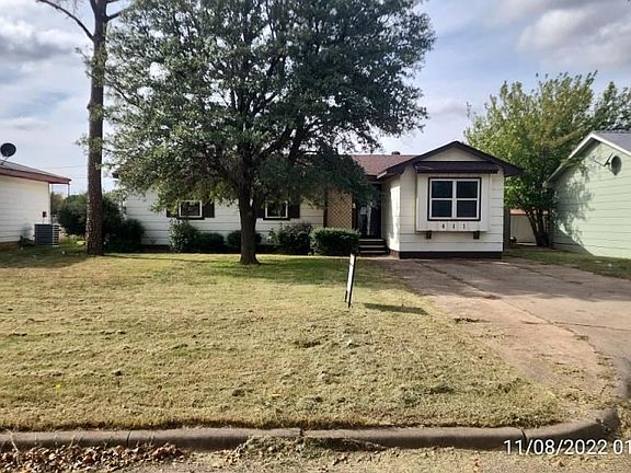 Great starter home! This is a 2 bedroom, 1 bath home featuring one large living area, and a den with access to the garage, and kitchen/dining area. The huge two car garage has access from the alley. For more information please call Janice Hertzog at 580-678-1688.
