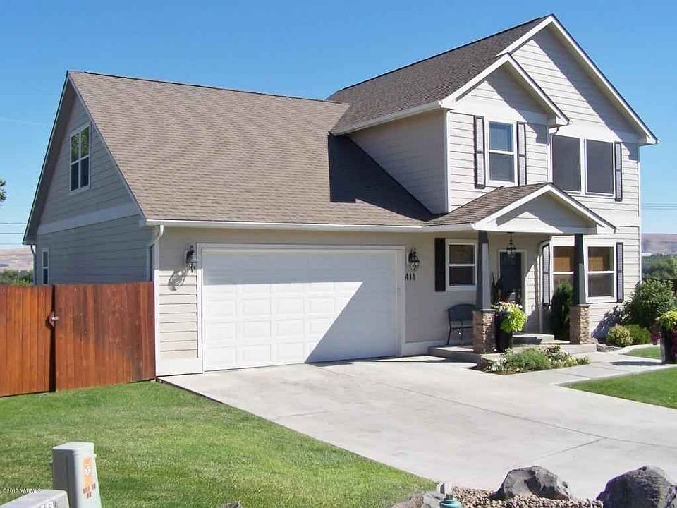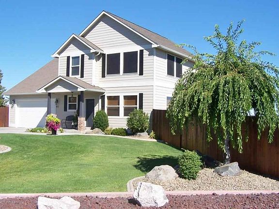 Over 2600 sq.ft. w/a 4-bedroom, (Includes 2 Master bedrooms.) 3.5-bathroom, 2 car attached garage, built in 2005. Patio & deck with great views of rolling hills & Mt. Adams., terraced professional landscape w/curbing, raised beds, grapes, a green house and storage area. Large fenced yard and U/G/S. Great design w/a balcony over looking a open 18 ft. high living room. Gas fireplace with wood mantle and tile. Main floor has 9 foot ceilings. New lovely wood floors in the living room and Master and new baseboards. Kitchen cabinets have been refinished with new doors, trim, and beautiful granite,. Eating bar, Stainless Steel range, faucets, double sink & dish washer. Main floor Master with full BA, 2 sinks, walk in closet. Large bonus family room. 2nd Master in daylight basement w/full BA.