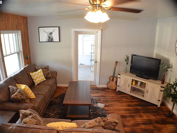You need to walk through to appreciate this home. Newly renovated 3 bedroom, 1 bathroom, 1,189 sq ft with 868 sq ft of unfinished basement. New interior paint makes it feel fresh. Original hardwood floors through living room. Brand new carpet in the bedrooms and hallway. Tiled kitchen floor, oak cabinets & backsplash. The bathroom is tiled with mosaic band. Plenty of fenced in yard space for pets and playing. Irrigation well, metal roof