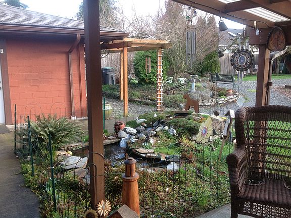 Mid-Century modern with oversize windows providing a panoramic view of large backyard including landscaping, raised garden beds and two outbuildings. Zoned Old Time Arlington.
