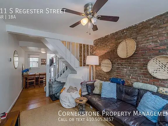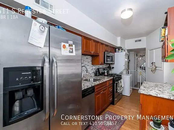 Welcome to 411 S Regester St, Baltimore, MD 21231, a charming 2-bedroom, 1-bathroom home available for $1695. This delightful residence boasts a range of high-quality amenities that elevate everyday living. The kitchen is a chef's dream, equipped with stainless steel appliances and a gas stove, complemented by stunning granite countertops. The home's interior is characterized by beautiful hardwood floors and exposed brick, adding a touch of rustic charm to the modern design. Central AC ensures comfort throughout the year, while the back patio provides a perfect outdoor space for relaxation or entertaining. Experience the perfect blend of style, comfort, and convenience in this Baltimore gem. Schedule your showing today! Pet Policy: Pet friendly -with additional fee Utilities: Covered by Resident Income Requirement: $6750 Credit Score: 650 Appliances Stainless Steel Back Patio Central Ac Exposed Brick Gas Stove Granite Countertops