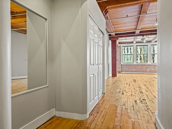 Sprawling timber/concrete loft in West Loop with over 1300sf of open living. This south-facing home has an abundance of light throughout that flows throughout the floorplan. Flexible space that currently has one fully enclosed bedroom, but also features a large open space for large living room, dining room and home office. Or, have a dramatic studio with 13-foot ceilings. There's plenty of space! The kitchen and bathroom are in a "vintage" state, though the kitchen has stainless appliances. Both are ready for your own finishes. Hardwood floor throughout. Central heat and air and laundry in unit. Storage. Cable and internet included. Parking available in lot across the street for $180/mo. Steps to the UIC overpass and Blue Line station. Quick walk to Greek Town, Restaurant Row, Bartelme Park, Mariano's and Whole Foods. A great opportunity to make this space yours.