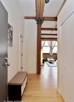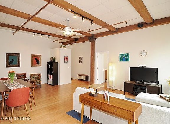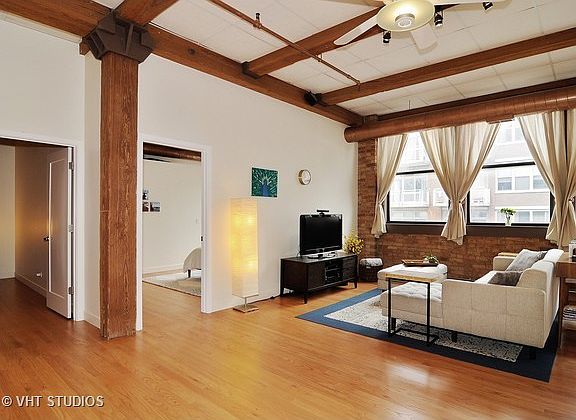 Redesigned unit at Sangamon Lofts in the West Loop! Oversized true brick and timber loft in sought-after converted warehouse. Flexible, bright space (almost 1400 sf) with eight large windows, exposed brick, 12' timber ceilings with insulated acoustic tile and hardwood floors throughout. Bright kitchen features stainless steel appliances and mosaic backsplash. *Two new fully enclosed bedrooms and organized walk-in closet* Huge spa bath has open double shower with two rainshowers, body jets, soaking tub and porcelain and mosaic tile. In-unit laundry. Western exposure on quiet side of building. UIC-Halsted Blue Line L stop, dog park, UIC, loop, stores, bars, restaurants, Target, Mariano's, Whole Foods etc. on doorstep. Live/work building. Rental parking $175 nearby - waitlist.