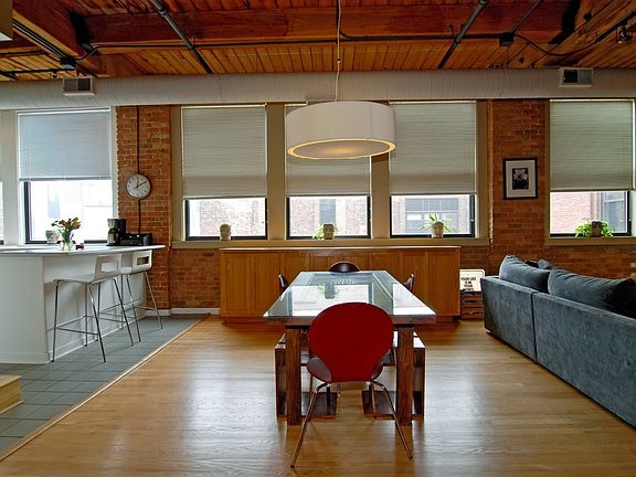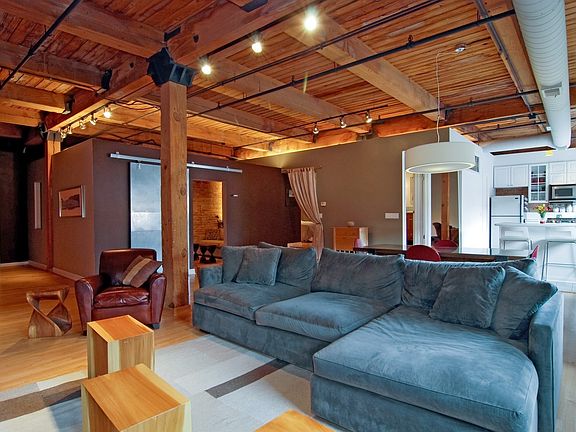AMAZING PRICE Enormous West Loop urban loft with 11' timber ceilings, exposed brick and original maple floors. Tons of light and partial skyline views from east facing wall of windows. Massive great room allows for multiple furniture configurations. White kitchen with stainless steel appliances. Great closet space including original walk-in safe! In-unit washer/dryer. Internet and cable with HBO included. Rental parking nearby $175/month. Live/work building close to El/Loop/dog park/UIC/restaurants/bars.