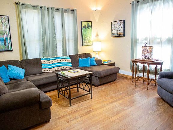 This 2-story craftsman was built in 1935 and has tons of charm. The home has a welcoming and inviting feel to it when you first pull up, but that doesn't stop there. The living area is spacious and is open to the dining area. Both rooms have hardwood floors and feature 2 beautiful wooden columns and built in ambient lighting that were used to distinguish the two spaces. The kitchen is good size and has cute red painted cabinets that go all the way to the ceiling on one wall, allowing you plenty of storage. Off the dining room is a small hallway with storage closet. From here, you will find the first & largest bedroom which has lots of windows and 10 ft ceilings. Next is the hall bathroom which has a new shower surround and flooring. The second bedroom has exposed shiplap on one wall, giving it tons of character, and also has a good size closet. The third bedroom is smaller in size and includes an attached bath with stand up shower. You can also access this bathroom from the laundry room at the back of the house. Upstairs is a large open area, currently used as an additional bedroom on one side, with a nice sitting area on the other. This is a great flex space that could be used for additional bedrooms, office & more. There is tons of space and it even includes 2 additional closets. Outside is a basement type space that can be used for storage, and there is even a set of rock steps leading down to a lower portion of the lot which can also be accessed from the street on the backside. This property has so much to offer. You don't want to miss out!