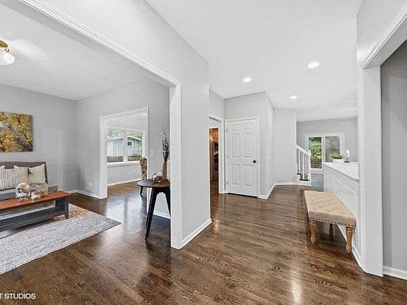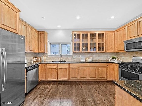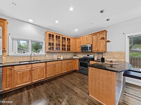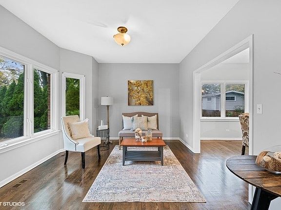 Wonderful Contemporary home with open floorplan. Freshly painted and newly refinished hardwood floors throughout the first floor, new carpet upstairs. Large upgraded kitchen w/granite and SS appliances. Spacious living flex areas can be step up multiple way to enjoy and entertain. Convienent first floor laundry hook up. Second floor has large wrap around landing to generous sized bedrooms with big closets. Primary suite has sitting area, bathroom with double vanities, separate shower and tub, walk-in closet and private deck overlooking backyard. Basement is finished with high ceilings, can lights, bar area and full bathroom. Huge deck and large patio area as well as privacy fence and bushes. Award Winning Westgate/South/D214 High Schools. close to train, downtown Arlington Heights and expressways.