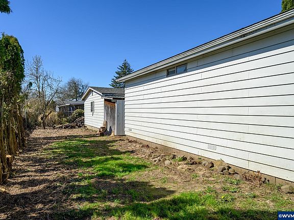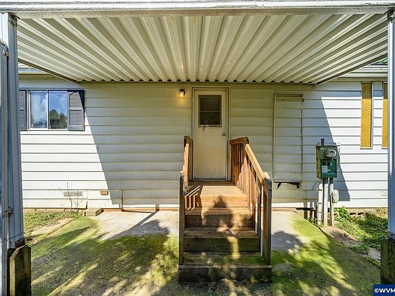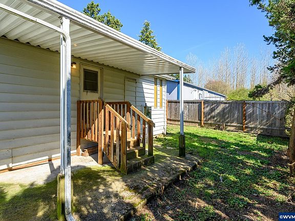 Great one-level home on 2 tax lots in small town, centrally located between McMinnville and Salem, possible dual living. Open living room with vaulted ceilings, large kitchen. Spacious primary suite with shower & tub, Partially fenced yard, mature landscaping. GFA heating, 2-car detached garage on separate lot. Covered deck and large covered front porch, easy in out out with circular driveway. Possible seller financing with large down payment.