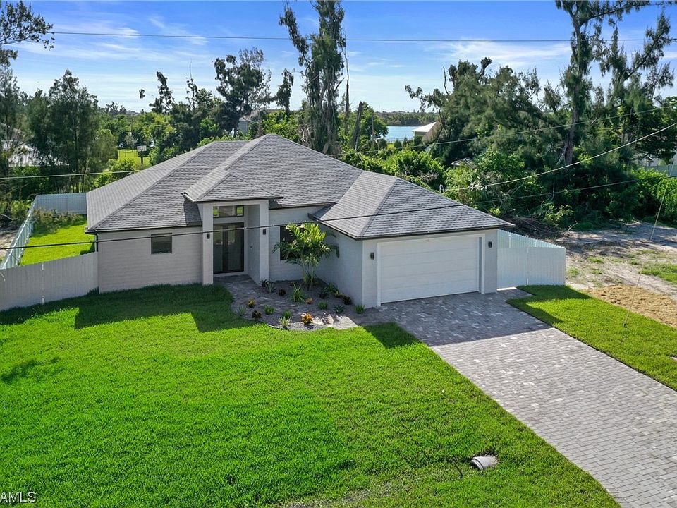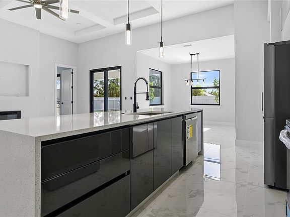 Beautiful New Construction Pool Home on city water/sewer. Custom built Home features 3 Bedrooms plus den, 2 Bathrooms, Quartz countertops in Kitchen and Bathrooms, Quartz backsplash, Stainless Steel kitchen appliances, soft close cabinets, upgraded lighting, fans and fixtures. Owners bath features dual sinks, 2 showerheads. Tray ceilings in Great room, and Owners Bedroom. 8' Sliders and doors, Custom closet wood shelving in walk in closets, Tile floors through out, Volume Ceilings, electric fireplace. Outside features a Beautiful Saltwater pool with glass tiles, pavered pool deck, outdoor kitchen with grill, sink and wine cooler, Epoxy garage floor, upgraded landscaping and a Fenced yard! Pavered driveway, Plenty of recessed lighting, Ring doorbell, Sprinkler System, Floratam Sod. Conveniently located, minutes to shopping and restaurants!