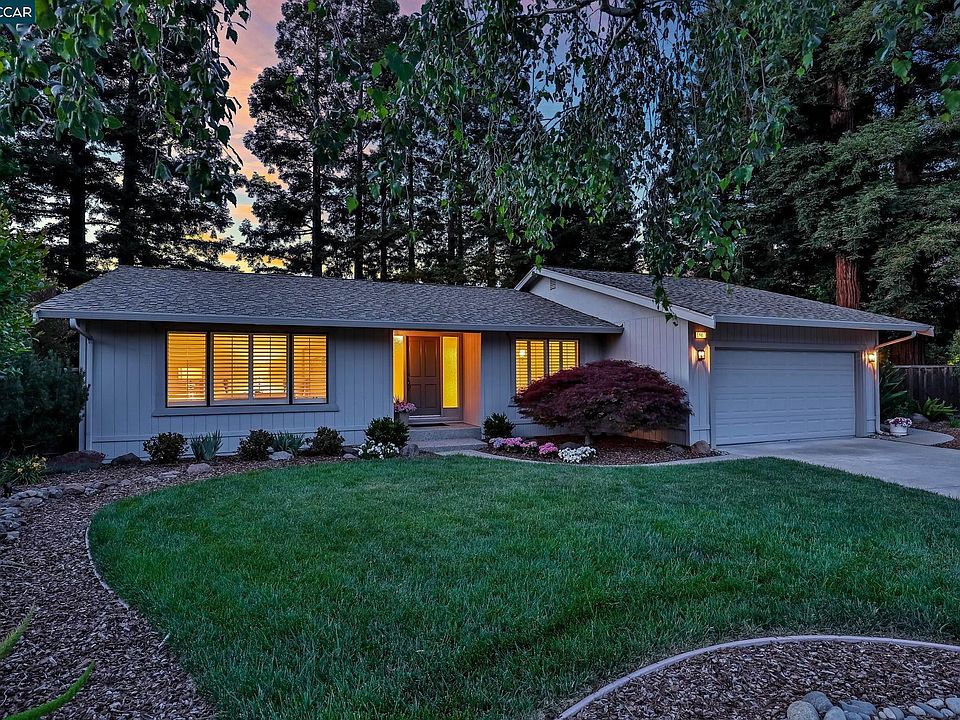 Motivated seller! $150,000 price reduction! Spacious custom single story home located on a court close to down town, top rated schools, parks, & Iron Horse trail. You'll love entertaining family and friends in your park like back yard with redwood trees, two patio areas, newly constructed redwood arbor, and huge lawn area. Lots of room for possible expansion or possible site for ADU. Open floor plan with cathedral ceilings. and plantation shutters. Updated kitchen has a huge walk in pantry & recessed lighting opens to separate eating area and family room. Family room opens to back yard and features cathedral ceilings, hardwood flooring, and gas fireplace with updated stone surround. Master bedroom suite with cathedral ceilings has a walk in closet and sliding glass doors that open to back yard patio area. Formal dining room off of entry can easily be used for home office. Garage is extra large with lots of storage area. First time on the market for resale.
