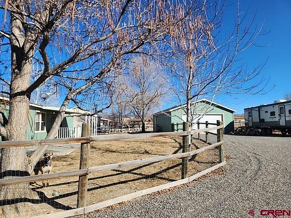 Colorado West Subdivision /Well kept older subdivision & mfg homes + central park/ immaculately kept 1290 SF Mfg home (1999). /3 bed-2 bath /covered porch on S side of house. Partial carpet & Mfg flooring /Wood stove & forced air heating /Large lot w-HOA irrigation and sprinklers/partially fenced w-Blue Spruce-Red maples & Northern Catalpa trees-beautiful setting/detached garage-workshop (with heating cooling window unit). RV & trailer parking allowed /close into town - schools & shopping/dining
