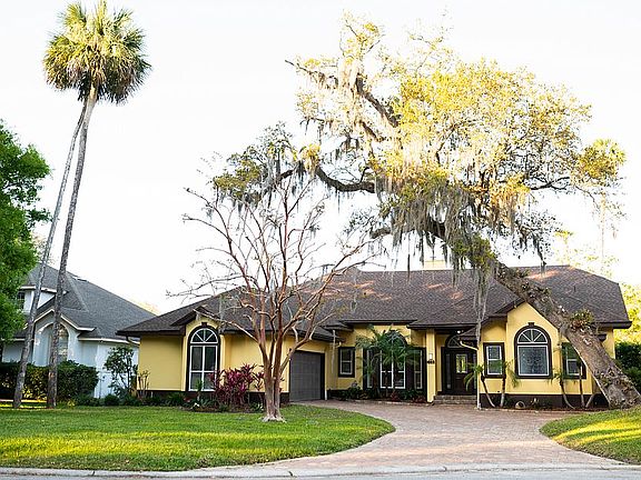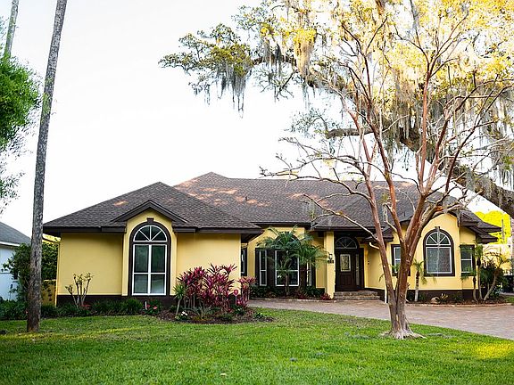 Gorgeous lakefront home on quiet cul-de-sac in Oceanwalk with community pool & private beach access. Custom built - one owner home with volume ceilings throughout. Lovely dining room with wood floor. Living room with fireplace & arched entry to fabulous family room & kitchen with island. Split bedrooms - 2 with Jack & Jill bath, guest suite with private bath, & Spacious master. Tile floors in foyer, living room, kitchen, & most of family room. Deck & patio & room to add a pool. Immaculate!