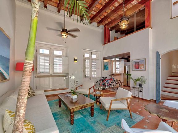 ***UNDER CONTRACT*** Timeless colonial home tastefully blends historic Old World charm with subtle modern touches. Casa Sol is located in one of the most coveted and colorful residential streets in Old San Juan. This three-level home offers maximum appeal and one-of-a-kind charm. The first floor features an upgraded kitchen adjacent to the stylish living room with a double-height ceiling that seamlessly opens onto the interior courtyard. The home has plenty of outdoor space connected to the interior, providing an excellent cross-breeze. There are three bedrooms along with one full bathroom and two half bathrooms throughout this 1,821 sq ft home. Each bedroom is unique, with the first floor bedroom located off the interior courtyard. The second floor features one bedroom and loft-style den. The Master bedroom is ensuite, located on the third level with access to the adjoining outdoor terrace. This home is ideal for the creative type with its inspiring spaces and infinite appeal. Old San Juan is the historic center of Puerto Rican culture and is dotted with several UNESCO World Heritage Sites. It serves as one of the top tourist destinations in the Caribbean and its historic buildings are renowned for their elegance and historic significance. Properties with historic value, such as this one, are exempt from property taxes. The area is regarded for its numerous dining, shopping and nightlife options.