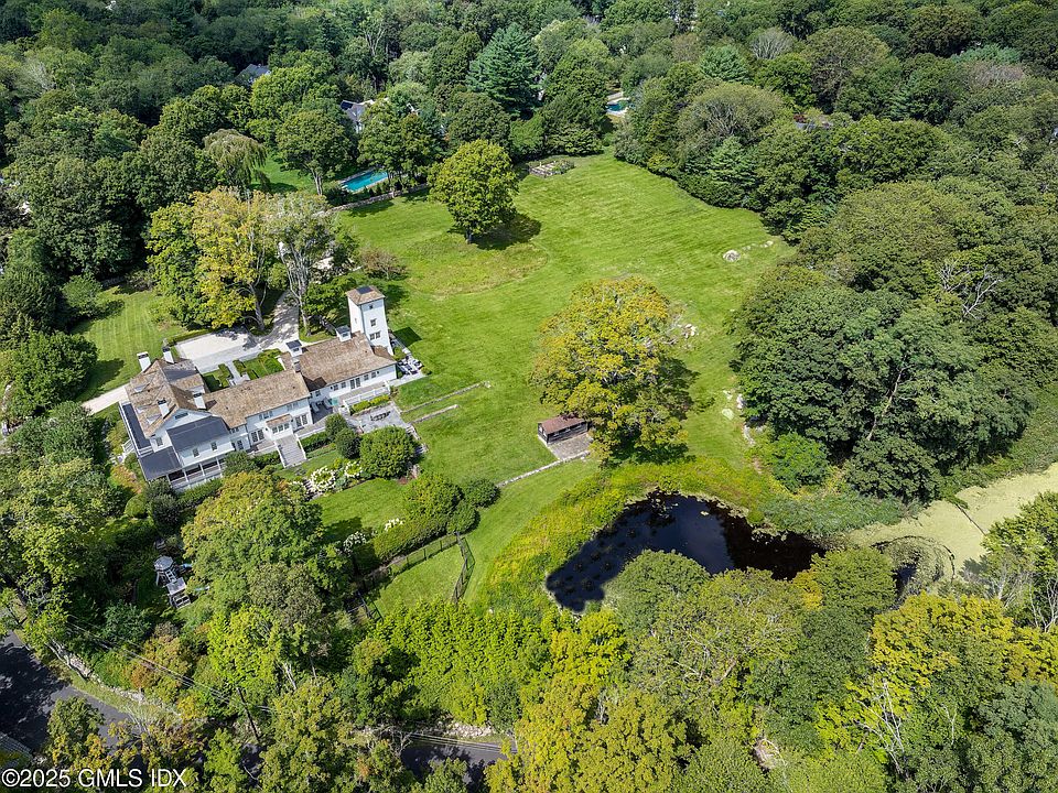 Welcome to Mead Farm - exquisitely renovated and transformed midcountry Greenwich estate that blends historic character with modern luxury. Set on nearly 6 acres in a 2 acre zone, this 9,189 SF residence offers 6 bedrooms, 6 full and 2 half baths. A recent multi-year renovation by renowned designer Thom Filicia, paired with award-winning landscaping by James Doyle, elevates the property to a rare level of refinement, harmonizing timeless design with modern comfort. Originally built in 1846, the home features wide-plank floors, copper gutters, 7 fireplaces, and a wraparound porch. The rebuilt water tower adds a gym, wine room, full bath, and dramatic double-height office. Outdoors, enjoy gardens, terraces, pool with autocover, pond and a barn with loft and garages — just minutes from town.