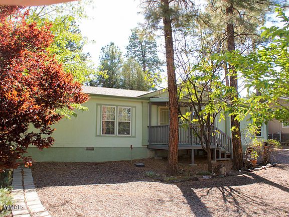 This, hard to find, Timber Ridge home is centrally located in Show Low. Tall pines surround this large property which gives you the mountain living feel the White Mountains offers. The large front porch welcomes you into the spacious living room which is filled with light from the large front windows. The oversized kitchen features a large breakfast bar, ideal for gatherings or family meals. The window over the sink offers a beautiful view of the forest outside. Off of the kitchen is a bonus space which could be used for additional family room, dining room or craft space. The updated and enclosed back porch allows you to enjoy outdoor living in the beautiful summers of Show Low. The primary bedroom has an enormous closet and en-suite. With a split floor plan, 2 more bedrooms and guest bathroom are spacious but privately tucked away from the living room. The garage is designed to house toys of all sorts or a workshop or even a game room with electricity already wired in. Call for a showing today.