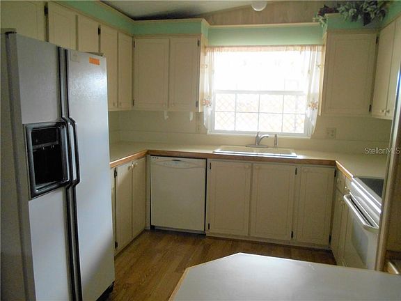 55+ Community. WELL MAINTAINED 2 bed/2 bath home in a 55+ golf course community with HOA fees of $45/month and YOU OWN THE LAND. Seller has replaced the roof (2007) and the A/C (2018). This home has been meticulously maintained through the years with newer windows, flooring, carpeting, and dishwasher. The living room has a new sliding door to the screen room that faces East for you to enjoy the sunrise. This is a nice open floorplan with a clean, clean, clean Florida Room with vinyl windows leading to a large shed with raised concrete floor that houses a newer washer, dryer, sink, and lots of cupboards. Nice size lot and located in a great area close to many restaurants, Margaritaville, and Disney.