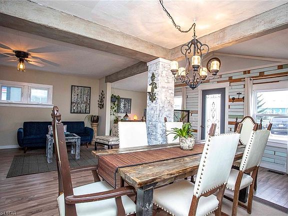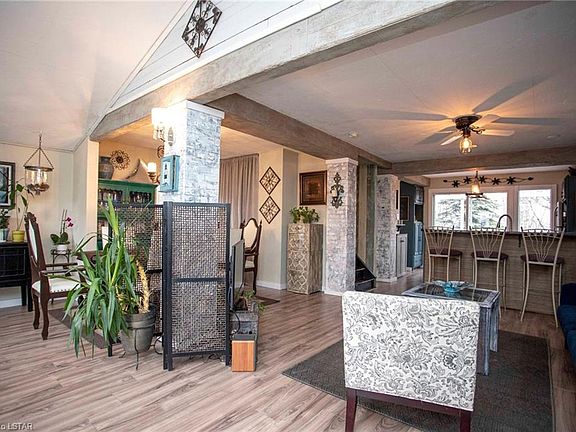 Beautiful hilltop home in a quiet area of Port Stanley with a 13 minute walk to the beach. If you are looking for an unique place that is move in ready, here's your chance. Everything has been recently redone including steel roof, eavestroughs, windows, furnace, air conditioning, doors, flooring, interior finishes, and light fixtures. The open concept main floor includes a pantry, small office, laundry and 2 piece bath. The second level of the house was recently renovated and converted for short term rentals with the 2 upstairs bedrooms each having a mini fridge, microwave, seating but can easily be transformed back into closet spaces. The Seller can make that happen for the right buyer. The lower level is a self contained unit with separate entrance with kitchenette that includes built in convection oven/microwave, fridge, and cooktop. In the fall of 2020, updates were done to the lower level walkout suite and a new transparent canopy was added to the large main floor deck, so you can enjoy your gorgeous, private backyard paradise truly emerges and overlooks a gorgeous forest ravine. Can be turned back into a single family home, or you have wonderful options for a guest suite or income property. Furniture and accessories negotiable. Municipal parking lot is a just down the street. 2 sheds on the low maintenance property. Quick possession possible. Low taxes.