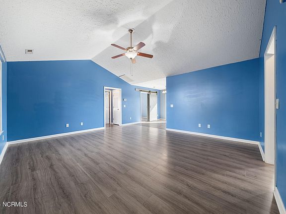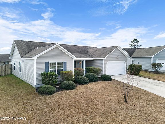 Come see this charming home in the desirable community of the Neighborhoods of Holly Ridge. 4 bedrooms/2 bath with roomy kitchen/dining area, flex space and a split bedroom plan. All bedrooms have new ceiling fans! The living room has vaulted ceilings and there is a flex space off the dining area with barn doors perfect for a play room, guest space, yoga/workout room, den, 4th bedroom or home office. Recently painted, newer carpet & hot water heater, new LVP floors throughout the owner's suite and living area. All appliances including washer/dryer/fridge covey in sale! The spacious fenced backyard is one of the largest lots in community and is perfect for backyard bbqs, gardening or playing with family, friends and pets. Just around the corner to the community park! Ideal location for commuting to nearby Camp Lejeune or head over the bridge to the beautiful beaches of Topsail Island. Located less than 5 miles from Surf City, which has restaurants & shopping such as the new Publix, Harris Teeter, Lowes, Walmart and more! Enjoy nearby fishing, boating, kayaking, golfing year round. Flex space off kitchen qualifies as the 4th bedroom. Listing agent to purchase a 1 yr HOME WARRANTY for buyers up to $500.