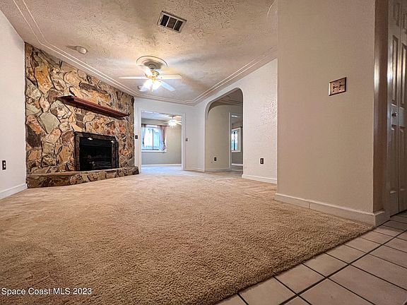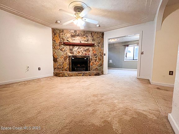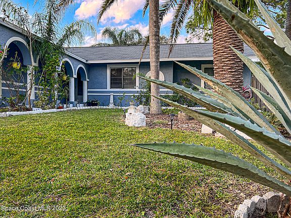 Watch beautiful sunsets over the palm trees in your new NW Palm Bay, FL 3/2 home. With a NEW 2 YR OLD ROOF, updated kitchen features, recently renovated surround tub & marble tiling in the guest bath, new guest bedroom carpet installed, spacious living space with LARGE DEN FLEX ROOM, & a cozy living room with a stunning stone fireplace. The large backyard is perfect for entertaining & relaxing, fur babies to run, or children to play with a privacy fence. A lovely screened in patio + BONUS Tool Shed. Nicely landscaped lawn around the entire home, 2 car garage with built-in workstation. Newer Water Heater. 2yr old washer/dryer included. This home has been lovingly cared for and is move-in ready with MOTIVATED SELLERS. This safe and quiet neighborhood is the perfect match for a family looking looking