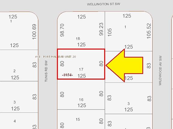 One of 2 side-by-side adjacent lots available in Port Malabar Unit #20 of Palm Bay (the other is 403 Tunis). This is a .23 acre buildable residential lot located in the southwest section, and is just .5 miles - 3 minutes to Jupiter Elementary School, 2.6 miles - 7 minutes to the Winn Dixie Supermarket, 12.5 miles - 28 minutes to Melbourne International Airport, and 15.0 miles - 32 minutes to the beaches of Indialantic. From exit #176 of I-95 go west on Palm Bay Road NE for .7 miles, left on Minton Road for 2.5 miles, right on Malabar Road for 1.5 miles, left on Jupiter Boulevard SW for .6 miles, right on Walpole Road SW for .1 mile, right on Town Road SW for .1 mile, continue on Wellington Road for .3 miles, left on Tunis Road. The lot will be on your left.