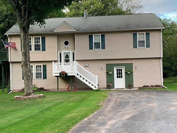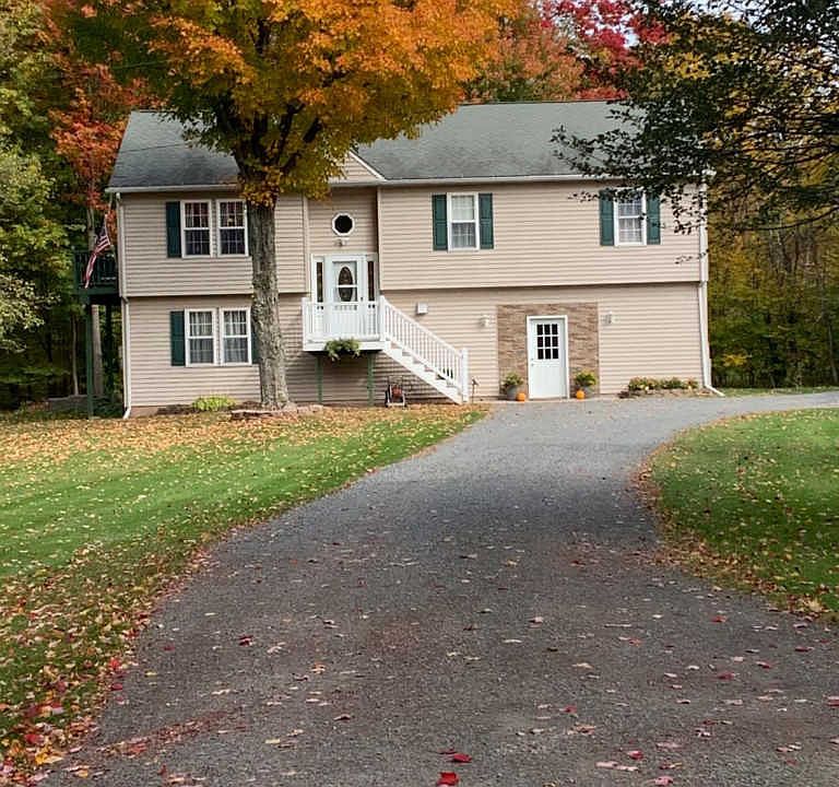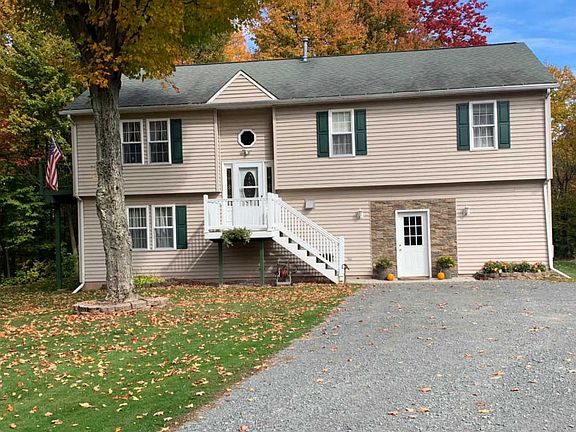 Beautiful well maintained raised ranch, located on a town maintained road in Kortright,NY. Built in 1998 with 4 bedrooms and 3 full baths; the home sits on 21 level acres with a seasonal stream on the backside of the property. Enjoy approximately 2800 square feet of living space. The ground level features a large mudroom entry, a family room, a bedroom, a full bath and laundry room. Upstairs, the communal area offers an open concept with vaulted ceilings in the living and dining room, solid wood cabinetry in the kitchen with plenty of cabinet and counter space accented with LED recessed lighting and a ceiling fan. The primary bedroom has its own private half bath with standup shower. Two other bedrooms and a separate full bath complete the level. There is plenty of closet space for storage throughout the home. REA co op provides 200 amp electric and there is high speed internet. A pellet stove is an added source of heat for the main floor. The new large deck just off the dining area creates another great entertaining space. Outside you'll you will notice the tasteful landscaping, a garden shed and a fabulous two car garage (28 x 32) with radiant heat, a work space and more storage.. This home has everything you need and more, Schedule your showing now.