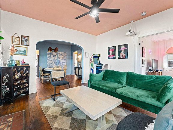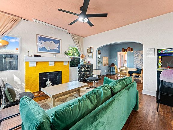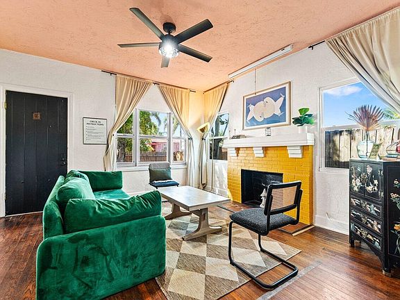 Welcome to this beautifully updated tropical retreat, where the timeless charm of a historic 1926 home meets the sleek elegance of modern comforts. Featuring 3 bedrooms, 1 bathroom, and a rare detached two-car garage, this fully furnished home is a true gem. The home is also equipped with hurricane impact windows, offering enhanced protection and peace of mind.Step inside to discover gorgeous wood flooring, intricate wall detailing, and 9-foot ceilings that create an open and inviting atmosphere. The kitchen has been thoughtfully renovated with modern appliances, while the bathroom showcases stylish upgrades, including designer wallpaper that adds a touch of elegance. Outside, a tropical paradise awaits. The meticulously designed backyard is built for relaxation and entertainment, featuring mini-golf, an outdoor dining area with BBQ grill, and a fire pitideal for entertaining. The space has been enhanced with an outdoor shower, pavers for two seating areas, new fencing, string lights, and sun sails, creating the perfect atmosphere for enjoyment.