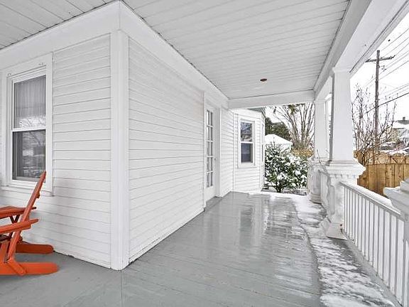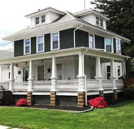 Unique "Arts & Crafts" style colonial from early 20th Century featuring a wrap around porch. Large fenced in yard and over-sized garage, too!