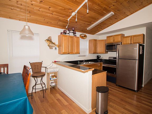 2 LIVING QUARTERS WITH FENCED-IN YARD! This 3 bedroom home offers a farmhouse style with a unique rustic touch. The beautiful wood vaulted ceilings give the living room a cozy feel and the open floor plan is a great place to invite and entertain. The bedrooms are spread out through the hallway and the bathroom has tons of storage. The home also has a fenced-in front yard! This is a unique property because it has a detached garage behind the home, that has a one bedroom/one bathroom apartment, equipped with a living room AND a kitchen above it. This can be rented out, or used as an additional living quarter. It would even make a great Airbnb! The detached garage and the home have two separate addresses.