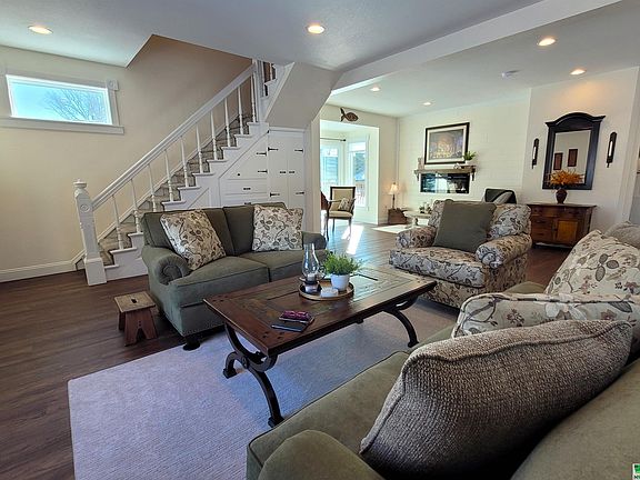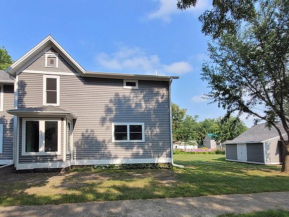 This beautifully renovated home will surprise many people with the character and charm and amount of finished living space that it offers. Previous owners had extensively remodeled this home from what it was, to potentially turn it into the turn key home you are looking for. The current owners have continued with some additional remodeling and decorating to give it additional charm, that so many people will fall in love with. This home offers three large bedrooms and two and one half baths with some WOW factor along the way! The main floor consists of a kitchen with brand new cabinets, countertops, stainless steel appliances and a walk in pantry. You will also appreciate the nice sized dining area with large windows, and a spacious living room. The current owner gave the living room some added style by adding a separate  area featuring an electric fireplace, and mantel that is close to the sliding glass patio door that leads to a new wooden deck. A centrally located laundry room on the main floor will be handy feature for those daily chores. The main floor also has a conveniently located half bath for visitors. Upstairs you will find three large bedrooms. The primary bedroom will surely impress due to the large size and bonus features it has that include two walk in closets, a series of large corner windows and a beautiful master bath. The primary bathroom features a custom tile walk in shower, large vanity and linen cabinet.  There also is another full bathroom on the upper floor that has been totally renovated with a combination tub and shower.  The windows throughout the  home are new, with the exception of a unique stained glass window that previous owners made the extra effort to keep to preserve the charm this home has. The ornate style of the woodwork can readily be found around the new windows and doors.  The previous owners completely rewired, plumbed and had a new HVAC system installed. The double stall garage and lean to are the finishing touch!