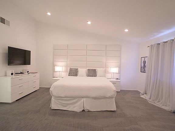 Beautiful, ultra modern 2 level condo in the heart of the Historic Tennis Club area of Palm Springs. Stunningly remodeled, light, bright, open floor-plan with glass enclosed hardwood staircase. 24 X 24 porcelain tile, gourmet kitchen with hi-gloss European cabinetry, island and dining area. Powder room on ground floor and enclosed patio off dining area. Both en suite bedrooms feature highly upgraded bathrooms, one with a double sink vanity. Ample separation for privacy. Master bedroom has stellar mountain views. Minutes walk to bistros, restaurants, shops and galleries. Could be leased furnished or unfurnished. Complex is beautifully landscaped with gardens and only 10 units. Available June 2nd.
